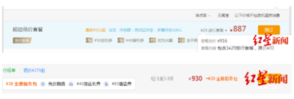 有曾通过上述平台购买机票的消费者告诉红星新闻记者,以往曾无意中购买过机票套餐产品,但套餐中提供的产品往往有限制。比如酒店券,几乎只能在当地五星级酒店或豪华酒店使用,价格非常高,相比之下,50元左右的酒店券并不实用。