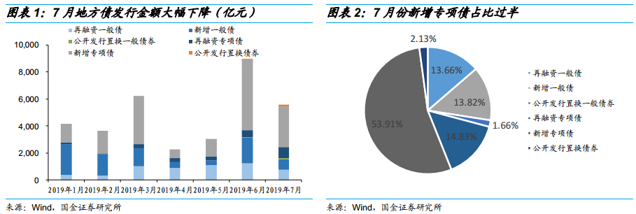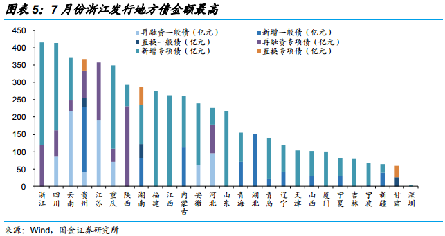 总体来看,7月份新增地方债发行规模冲高回落,但仍处于高位,年内地方债供给压力在一定程度上有所缓解。