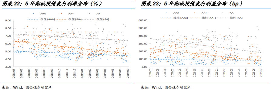 4. 城投债发行利率整体下行,利差收窄效应明显