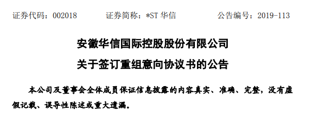 8月8日晚间,*ST华信发布公告称,公司与中州炭素签订《重组意向协议书》,就由中州炭素协调帮助公司摆脱债务危机等事宜达成合作意向。