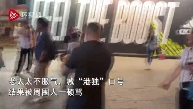 老太太不服气,喊“港独”口号,结果被周围人一顿骂。有说她是“狗”,让她“回英国”。