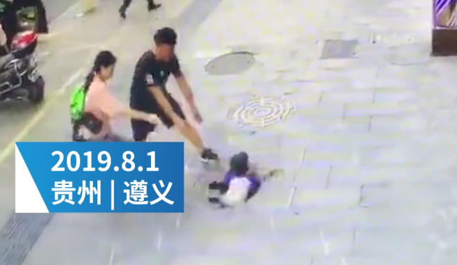 8月1日,贵州遵义。一名男童一脚踩在破损的井盖上,不慎坠入市政管井,幸被父母及时救起,并无大碍。目前市政部门对已损坏的井盖进行检查更换。