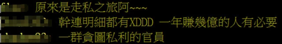 此外,有岛内网友批评蔡英文这次“出访”:原来是“走私之旅”啊;“一群贪图私利的官员”。
