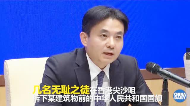 今天下午,国务院港澳办新闻发言人杨光表示,自6月9日以来,已经有将近500人在暴力冲突中受伤,其中包括100多名警察。更令人愤慨和高度警觉的是,部分激进分子撕毁香港基本法、污损国旗。8月3日傍晚,几名无耻之徒在香港尖沙咀拆下某建筑物前的国旗,扔进海中。这一行径,严重触犯了法律,公然冒犯国家尊严,挑战“一国两制”国家底线。