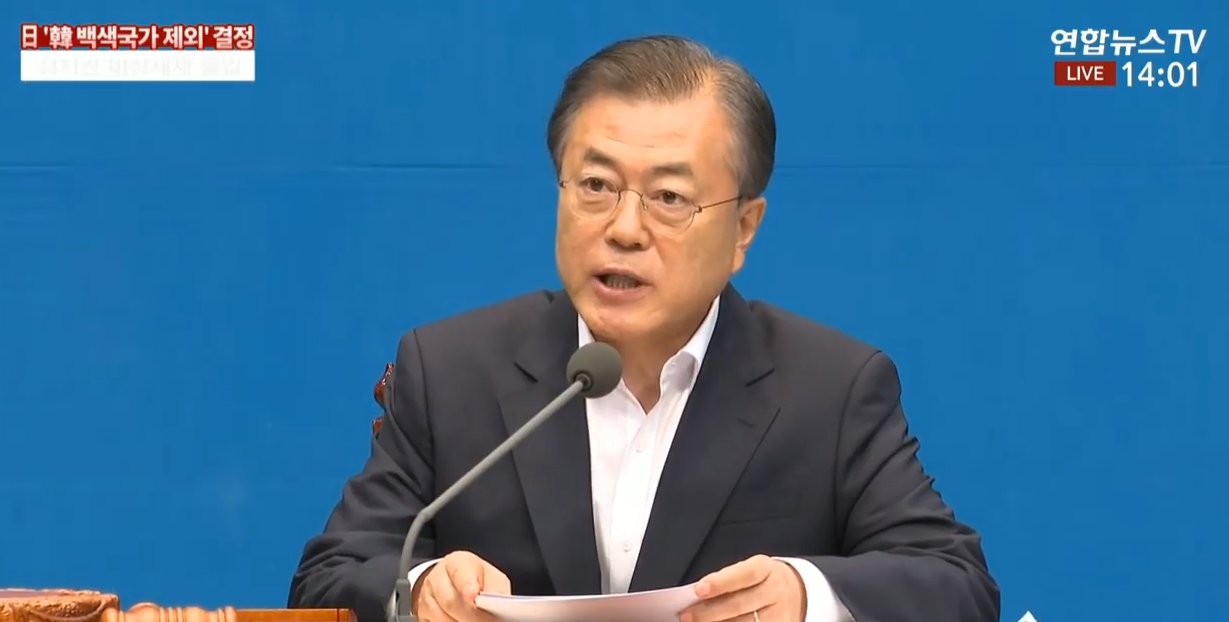 当天下午,韩国总统文在寅主持紧急国务会议时,严批日本把韩国排除“白名单”的决定“鲁莽”。他敦促日方重回谈判,并称韩方会对日方行动采取相应措施。韩国副总理兼企划财政部长官洪楠基则随后表示,“韩国也将把日本从‘白名单国家’中剔除,对其强化出口管制。”(编译/海外网 刘强)