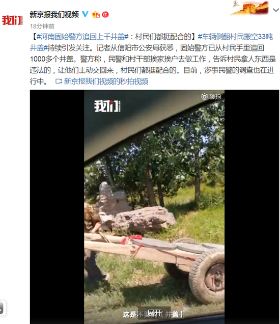 原标题:#河南固始警方追回上千井盖#:村民们都挺配合的