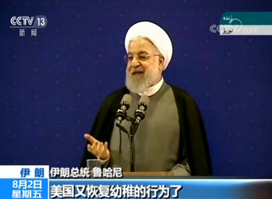 伊朗总统 鲁哈尼:美国又恢复它幼稚的行为了。他们天天宣称“我们想要会谈,不设先决条件”、“我们准备好了随时和伊朗政府会谈”,然后他们却制裁了我们的外长。