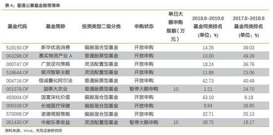 另外,我们以普通股票型、灵活配置型、偏股混合型、平衡混合型以及偏债混合型为主的普通公募基金作为备选基金池,根据基金最近两年的业绩排名情况以及更新后的基金规模筛选出了新华优选消费(519150.OF)、嘉实物流产业A(003298.OF)以及广发逆向策略(000747.OF)等10只基金,推荐投资者长期关注