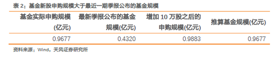在网下投资者申购新股的过程中,由于发行方及承销商有义务对申购配售对象的申购规模进行核查,要求产品的申购规模不得大于产品本身的净资产规模,因此对于部分基金规模接近新股申购规模的基金产品,我们可以根据基金的实际申购规模推断基金规模的最新水平。