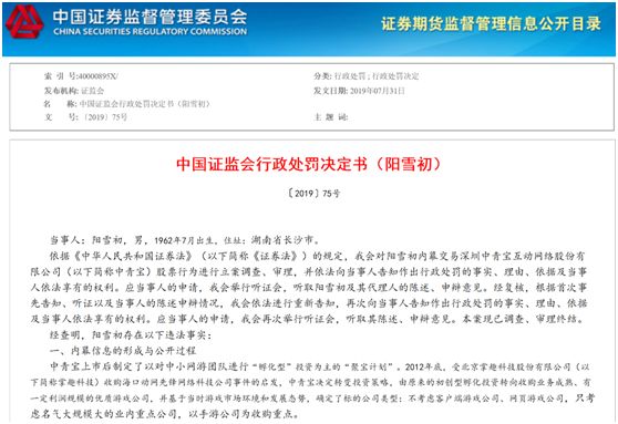 据上述罚单显示,阳雪初控制的证券账户组多数属于新开立账户(共8个账户),开户时间与内幕信息形成、变化时间相一致。融券、杠杆配资、抵押房产融资的时间与内幕信息形成、变化时间相一致。此外,阳雪初开始买入“中青宝”时间与内幕信息形成、变化时间相一致,卖出时间与内幕信息公开时间相一致。