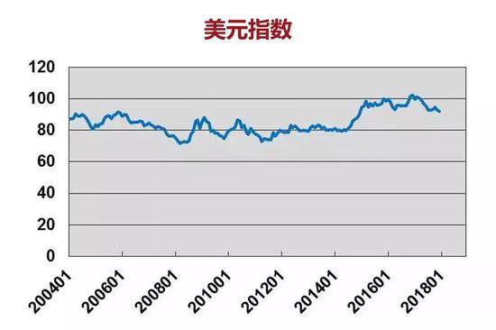 一般来说,美元指数主要在80-100之间,80左右视为“弱势美元”,100左右视为“强势美元”。美元最近从弱势走向强势,这叫做“走强过程”。