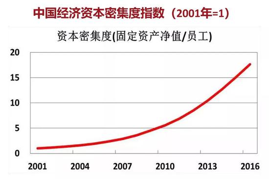 今年是改革开放40年,我国已经从劳动密集型发展为资本密集型经济体,从国际比较优势的理论角度看, 中国也要开始资本对外输出。中国的资本密集度,在2001年是1个单位,2016年是18个单位,我们的资本膨胀了18倍,伴随着产能过剩、库存过剩、资本过剩,我们应该做的就是在资本项目下走出去,通过海外投资、资本输出,实现人民币的流出;在贸易项目下通过工业输出,实现人民币的流入,从而最终实现人民币的全球循环。