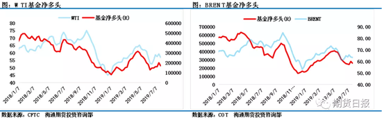 最新一期的基金持仓显示净多头进一步回落,本期商品期货交易委员会CFTC商品类非商业持仓报告净多单为387219手,较上一期继续减少10560手,这些专业机构进一步下调了净多头寸,说明对油价后市并不看好,而市场确实也用暴跌来回应了这些机构对油价后市正确的评估。
