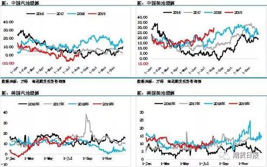 对于本年度来说,尤其是下半年的原油市场,8月份是最有可能走强的时段,因为此时汽柴油陆续进入消费旺季对原油需求有望形成提振,这对于原油市场疲弱的需求来说是非常重要的时期,两个最大消费市场成品油裂解差好转走强进而带动原油价格回暖降为原油市场注入看涨预期。