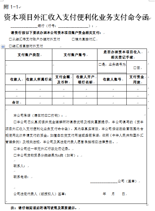 《资本项目外汇收入支付便利化业务支付命令函》填表说明: