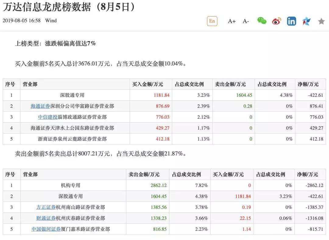 而8月5日万达信息盘后龙虎榜数据显示,机构席位高居卖一位置,卖出了2862.12万元,占总成交比例7.82%。
