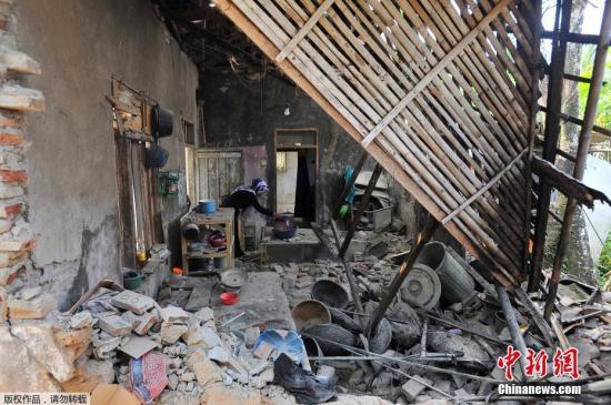 当地时间2019年8月3日,印度尼西亚万丹省,地震导致当地房屋受损。