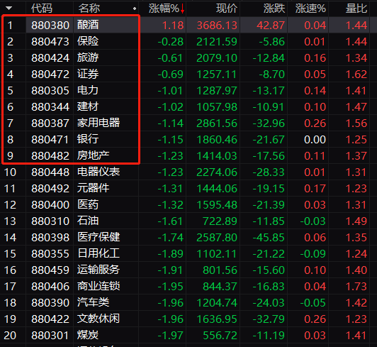 全球动荡,A股能在一片崩盘中,相对抗跌。今日酿酒、保险、证券、电力、家电、银行、房地产等权重板块走强较强,酿酒板块更是逆势飘红上涨逾1%。