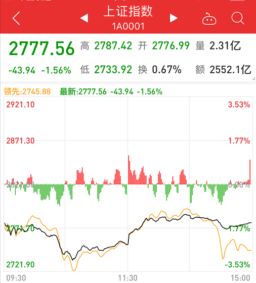 美股连续4日暴跌,欧洲股市也全线重挫,人民币汇率波动加剧,全球金融腥风血雨,今日A股开盘后快速走低,三大股指盘中一度跌逾3%,上证指数一度跌至2733点,然而最终强势V起,形成长下影线的十字星K线,最终收跌1.56%,报收2777.56点。