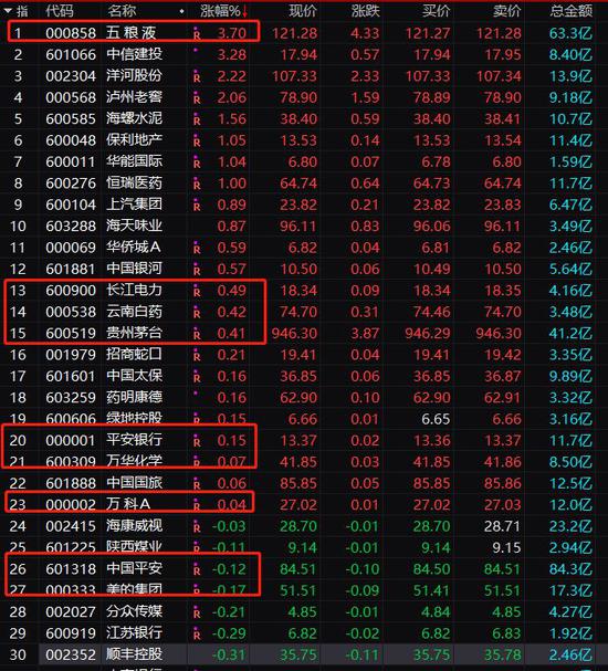 具体个股中,五粮液大涨3.7%;贵州茅台逆势上涨0.41%,收报946.3元;长江电力涨0.49%,万科A也逆势上涨;中国平安仅是微跌。