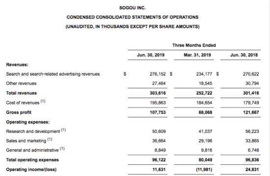 搜狗CFO Joe Zhou表示:“我们在第二季度继续推动营收增长。值得注意的是,大数据和推荐服务的营收同比增长迅速。尽管我们预计2019年下半年外部环境仍将充满挑战,但我们预计新的增长动力将带来积极的势头。”