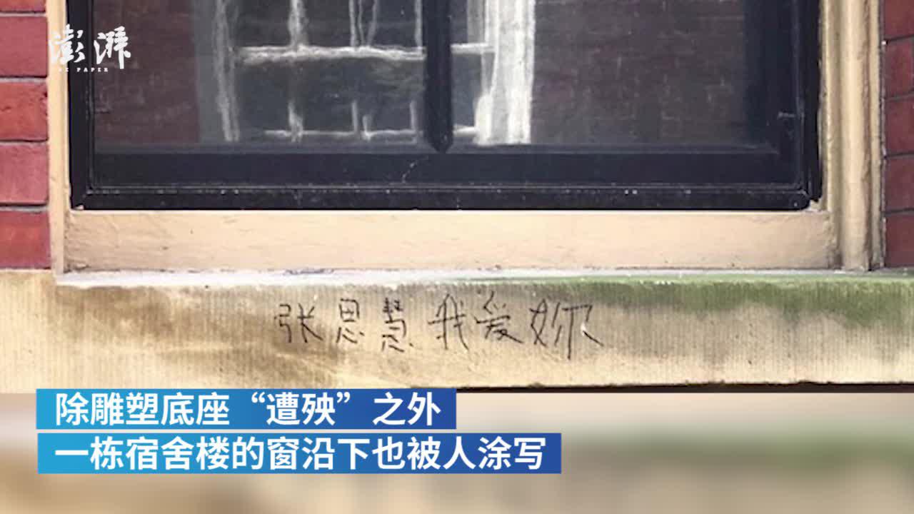 原标题:示爱还是恶搞?哈佛大学雕像现中文涂字