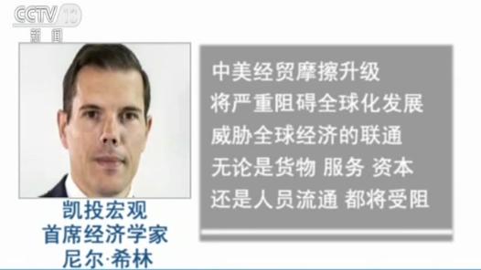 国际经济分析机构凯投宏观首席经济学家尼尔·希林提出,中美经贸摩擦升级将严重阻碍全球化发展,威胁全球经济的联通。无论是货物、服务、资本还是人员流通,都将受阻。