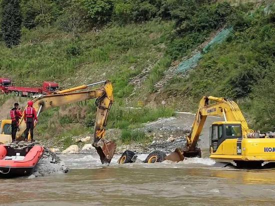 大型挖掘机到达事故现场后,指挥员再次调整救援方案,利用两台挖掘机同时支撑、移动事故车辆。随后,事故车辆被成功拖到浅水区域,消防人员立即上前查看,没有发现被困驾驶员。指挥员命令侦察小组沿河岸往下游方向进行排查搜索,17时35分当地施工人员发现疑似失踪落水驾驶员,搜救组立即前往救援,搜救小组到达现场立即展开救援,利用绳索成功将落水驾驶员救起,遗憾的是已无生命体征。最后一名落水者于8月7日早上打捞上岸,已无生命体征。