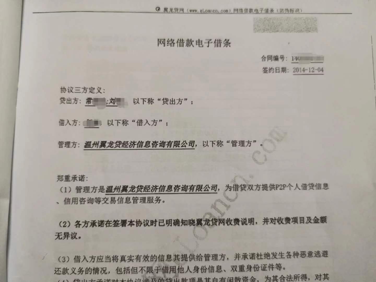 翼龙贷是联想控股旗下的网络借款中介平台,刘东曾于2014年12月在该平台借款。当时签下了一张“出借方是常某、刘某,管理方是翼龙贷,借款人是刘东”的三方《网络借款电子借条》(以下简称《借条》)。