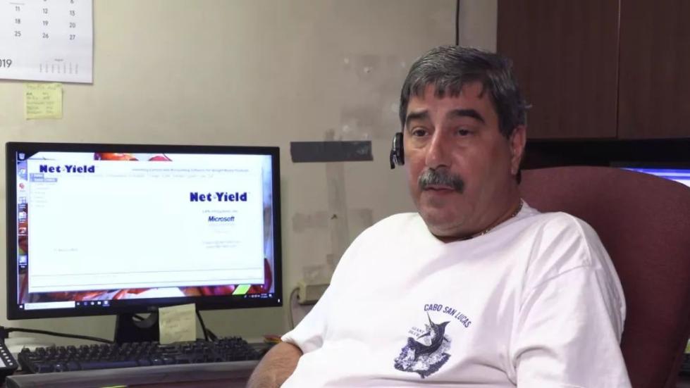图为龙虾贸易商文 斯?莫尔蒂拉罗。(视频截图)