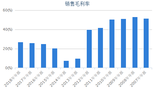 智通财经App了解到,王朝酒业销售方面采取的是层层分销的金字塔结构,在2010年之前的销售毛利率在50%左右。但是市场变化后,由于王朝反应迟钝,转型受挫,原来的分销模式大大限制了其利润空间,2011年和2012年毛利率降到40%,2013年为分界线,毛利率再没超过30%。