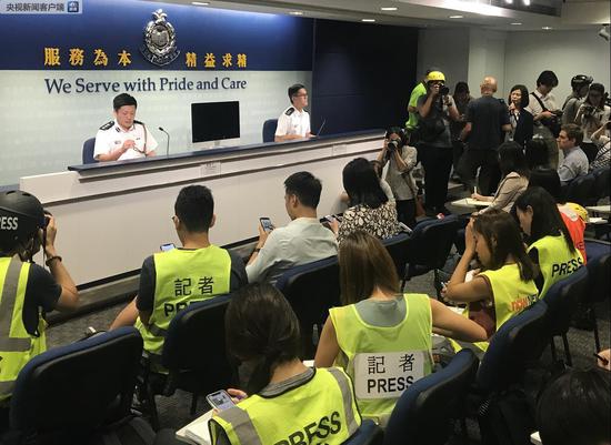 警方表示,有7名警员在执法行动中被暴力示威者用钢珠射伤、砖头砸伤。(央视记者 张成)