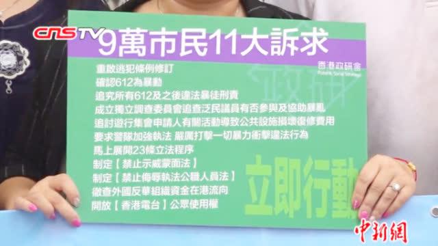 原标题:香港民间提11大诉求 促立法禁蒙面示威