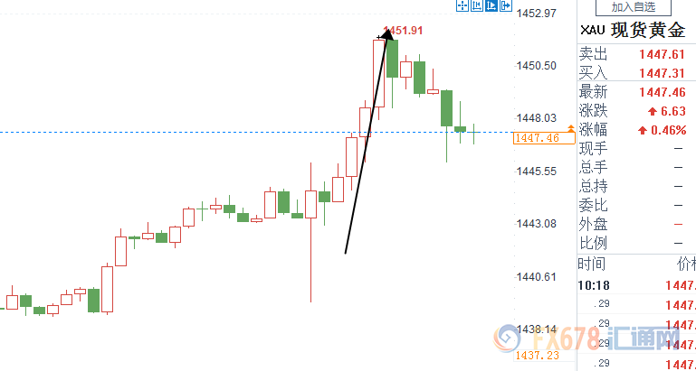 原标题:现货黄金短线上破1450,刷新两周高点;三大因素成推手黄金上看1480可期