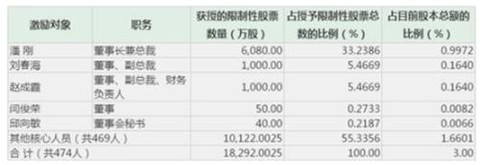 具体激励对象来看,本次激励对象共计474人,包括公司公告时在公司任职的董事、高级管理人员、核心技术(业务)骨干以及公司认为应当激励的对公司经营业绩和未来发展有直接影响的其他员工。