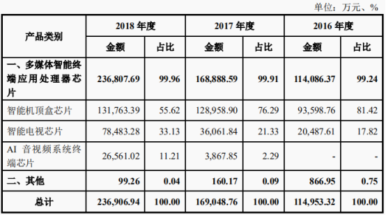 除了在市场中占有一席之地,多媒体智能终端芯片也为晶晨股份创造了不菲业绩。