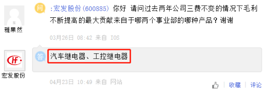 值得注意的是,汽车继电器为公司传统优势领域之一,在上交所互动易平台上,公司曾表示汽车继电器的业务增长是公司毛利不断提高的原因之一。