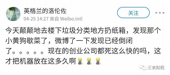 4月下旬,也有微博网友反映,自家附近的小黄狗已停止运营。