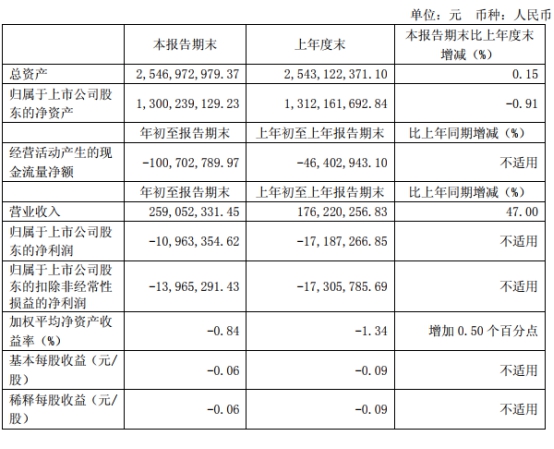 2019年一季度,亚士创能净利润为负。一季报显示,亚士创能营业收入为2.59亿元,同比增长47.00%;归属于上市公司股东的净利润为-1096.34万元;归属于上市公司股东的扣除非经常性损益的净利润为-1396.53万元;经营活动产生的现金流量净额为-1.01亿元。