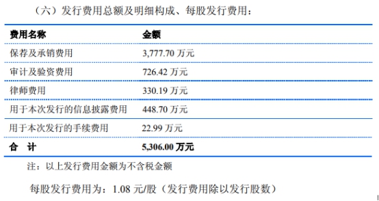 另外,亚士创能支付上海市锦天城律师事务所的律师费用330.19万元,支付立信会计师事务所(特殊普通合伙)的审计及验资费用726.42万元,每股发行费用为1.08元。