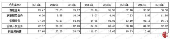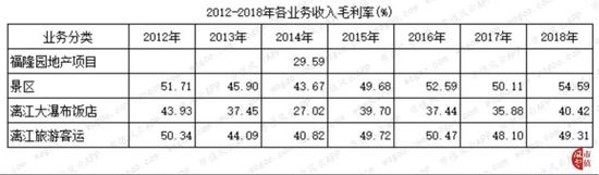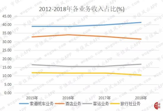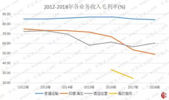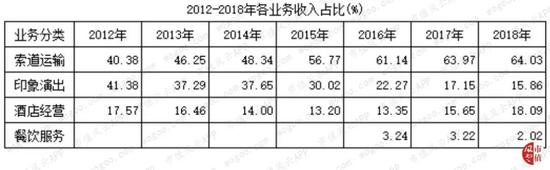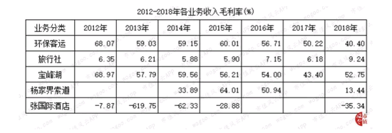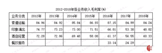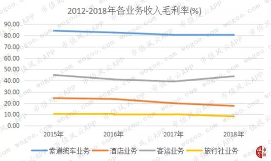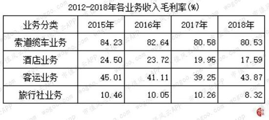 张家界的酒店业务出现连续亏损,索道业务的毛利率波动非常大。