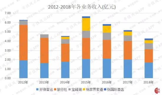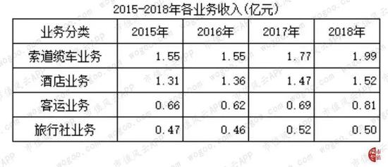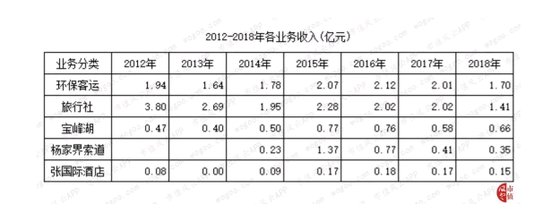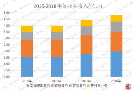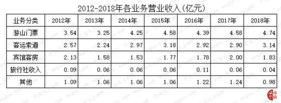 与前面3家景区旅游企业有着明显不同的是,张家界的旅行社业务贡献较大收入;此外,张家界的索道业务和酒店业务收入很小。
