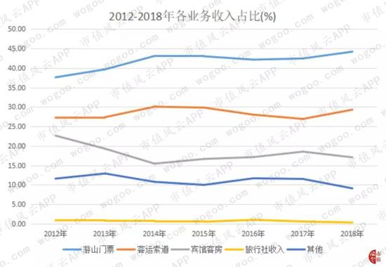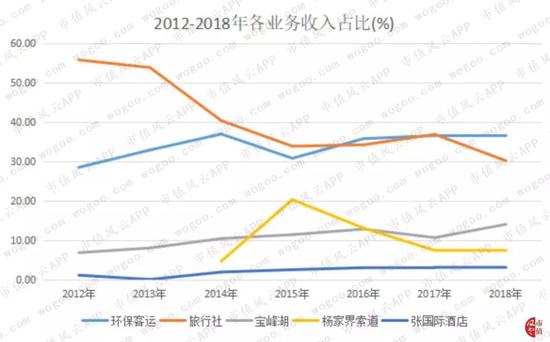 整体看,环保客运和宝峰湖业务主要贡献的是景区门票收入,二者合计占比50%左右,旅行社也是占比逐年下滑,索道业务收入占比也逐年下滑。