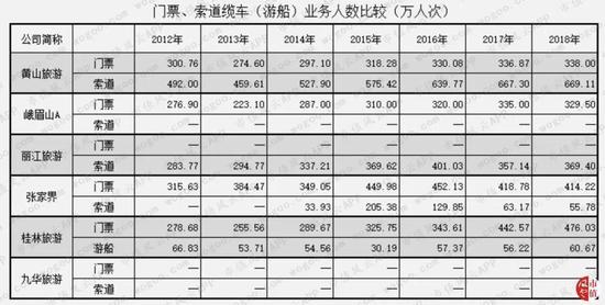 根据上市公司年报披露的景区数据整理,本部分只分析景区数据,上市公司旗下的酒店、旅行社、汽运等非景区数据不做比较。