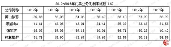 结合上文的数据,黄山旅游与峨眉山A的景区游客数量相当,但后者的景区收入却大幅超过前者,说明后者的客单价大幅高于后者;2018,桂林旅游的游客数量最多,但是景区门票收入却低于峨眉山,显然,桂林旅游的景区客单价并不高。继续看下文。