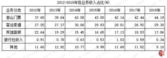 拥有“世界文化与自然遗产”和“世界地质公园”之称的黄山风景区,2018年报披露主营分为四大业务,分别是景区管理业务、索道及缆车业务、酒店业务,旅行社业务。