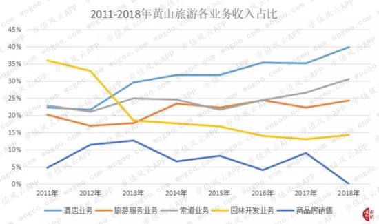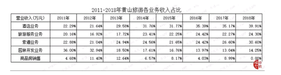 黄山旅游的收入结构包括酒店业务、旅游服务、索道业务以及园林开发业务,2017年10月商品房业务从上市公司剥离。