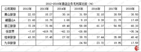通过上文知道,黄山旅游的酒店业务收入占其营业收入的4成,形成鲜明对比是张家界的酒店业务收入仅占其营业收入的3%,二者比较起来,高低立现。