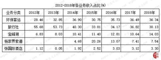 该公司业务比较多,包括公路客运、车站、车辆检测、房地产、景区、酒店、游船等,最近3年的主要业务是景区、酒店、游船三大块。