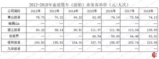 除了景区门票外,与景区密切关联且毛利率很高的还有索道缆车(游船)业务。